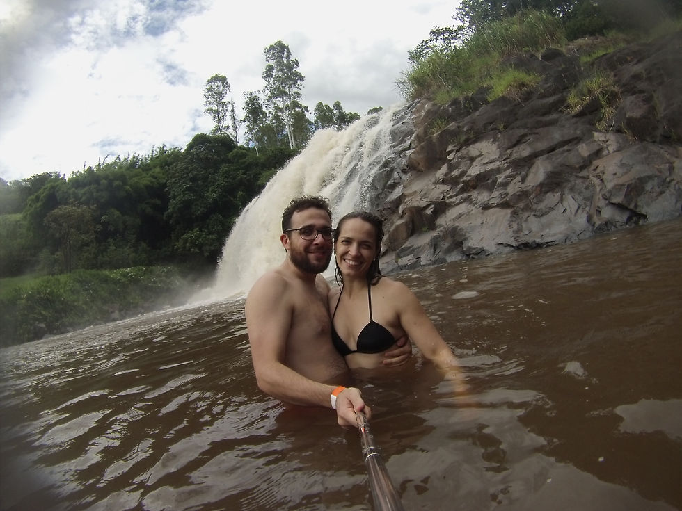 Começamos bem, porém, ao chegar na parte do rio ficamos em dúvida para que lado iríamos. Em direção ao movimento da água que poderia chegar a uma queda menor ou ir contra o movimento da água, chegando assim na queda de água principal. No entanto, nesse momento já estávamos todos cansados e descobrimos que sem preparo físico e com a quantidade de água que corria ficaria muito difícil subir.